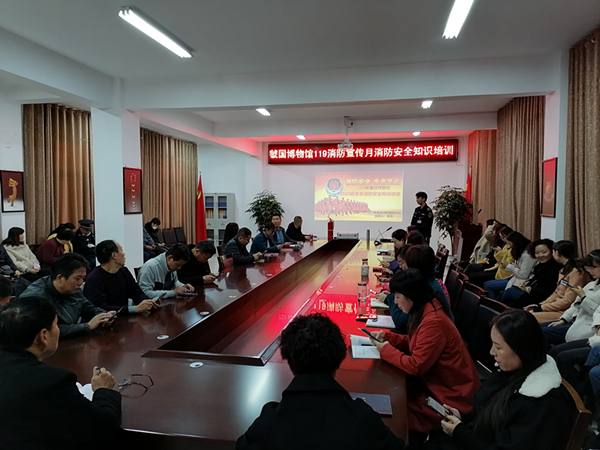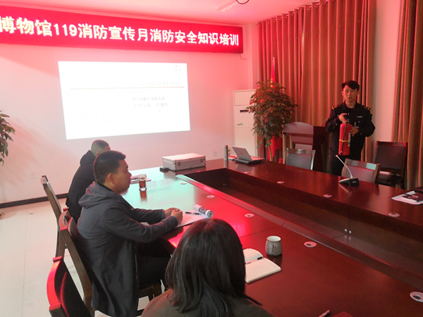 为贯彻落实三门峡市防火安全委员会关于印发2020年“119”消防宣传月活动方案通知要求,持续推进消防“四个能力”建设,切实提高虢国博物馆全体职工消防安全意识,提升虢国博物馆防止火灾能力,11月6日上午,我馆邀请三门峡市宣安消防服务中心李泊教官到馆开展消防安全知识培训。