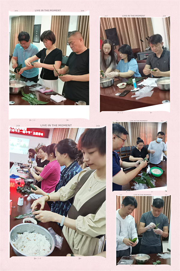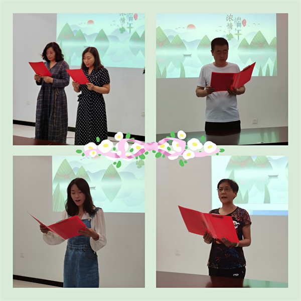 在“诵经典”环节,一首首包含情感的诗词,掀起了缅怀屈原的爱国主义情怀,歌颂和谐盛世的热潮;通过“有奖竞猜”环节,了解了端午节的来历、习俗及端午节南北文化差异;“包粽子”环节,大家整齐地围拢在桌子旁,包粽子能手们边示范边讲解包粽子的步骤,全体职工共同参与,会的巧手翻飞,不会的虚心学勤动手,大家欢声笑语,其乐融融。