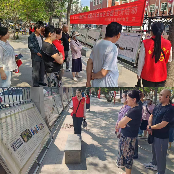 社区活动同样精彩纷呈。6月12日上午,志愿宣讲团队走进市场社区,带着精心制作的展板,以图文并茂的形式让文物和成语巧妙结合,向居民们讲述跌宕起伏的历史故事。志愿者热情为居民们详细解读,耐心解答大家提出的各种问题,让晦涩的历史知识变得通俗易懂。结束后有居民说道:“原来成语里藏着这么多虢国故事!听志愿者讲‘假途灭虢’的典故,再看展板上的地图演示晋国如何借道伐虢,一下子就记住了。这种把成语和历史文物结合的方式太巧妙了,长知识又有趣!”