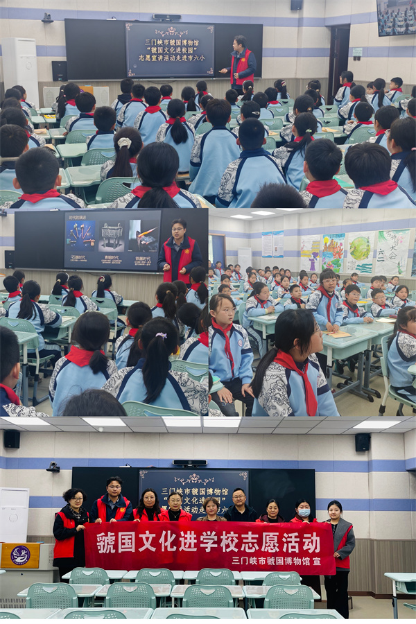 文化进校园,薪火传文脉。3月26日,我馆开展“虢国文化进校园”志愿宣讲活动,组织文化志愿者走进市六小,为四年级孩子们带来一堂生动有趣的《青铜器上的纹饰》课程。宣讲老师通过文物图片展示、历史故事讲解、趣味互动问答等形式,向孩子们介绍虢国青铜器上的纹饰,让学生们近距离感受传统文化魅力,激发其对历史文化的兴趣与热爱,推动优秀传统文化在校园落地生根,厚植青少年文化自信。