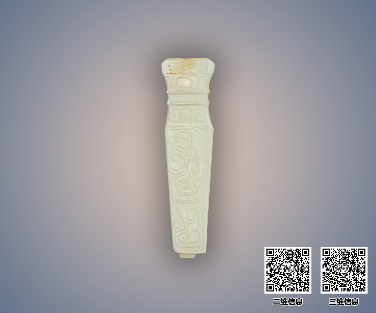 M2012凤鸟纹管状白玉柄形器
