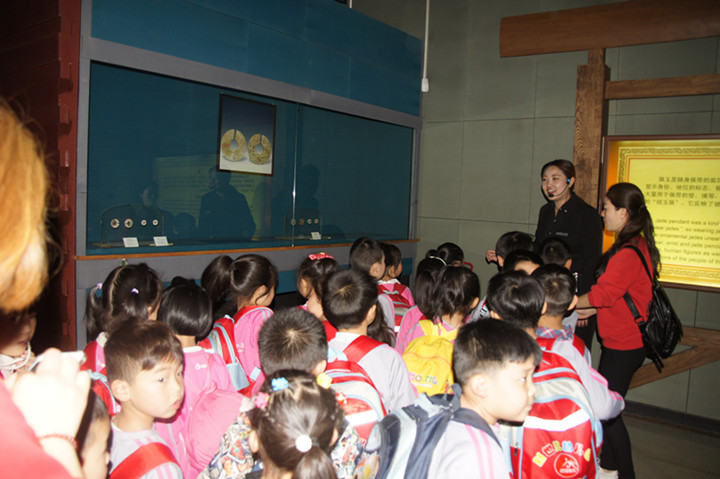 作为“爱国主义教育基地”的虢国博物馆自开馆以来,利用自身的独特优势,充分发挥博物馆的社会教育功能,把弘扬爱国主义作为社会教育的主旋律,开展了一系列爱国主义教育活动。为配合我市青少年社会实践大课堂活动,4月13日清早虢国博物馆迎来了三门峡市外国语小学的近400名小学生和新世纪幼儿园的100多名可爱的小朋友们。学生们在老师的带领下有序地参观,通过我馆优秀讲解员认真耐心地讲解,他们不仅了解了虢国文化,还认识了不少虢国珍宝,从视觉角度感受到中华文化的厚重。这次活动,将学生的课堂教育与课外实践活动紧密结合,丰富了学生的课余生活,增加了他们对家乡的了解和热爱。