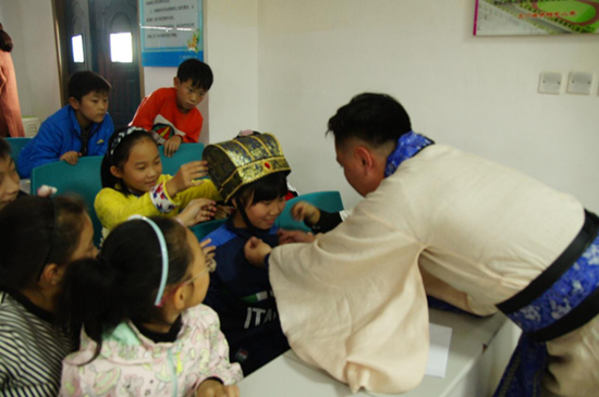 通过讲解和展示,让同学们了解周代服饰和冠冕。