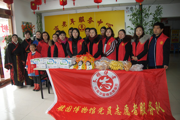 锣鼓喧天闹元宵,志愿爱心送温情。在元宵佳节来临之际,虢国博物馆志愿者们带着慰问品走进市老年服务中心,开展了“佳节送温暖、敬老献爱心”志愿活动,和老年朋友度过了一个愉快、温馨、祥和的元宵佳节。
