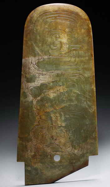在远古时代,人们给玉器赋予了很多精神内涵,他们相信龙是能够兴风至雨的神,从而将龙人格化。他们认为世间的一切是由上天的力量来主宰,而这些稀有珍贵的玉器,更是上天的恩赐,具有通灵的效果。人们将人龙纹饰雕刻在玉器上,象征着国君可以驾驭疾驰风雨的龙,飞往天界、与天神交流,祈求风调雨顺、江山永固。