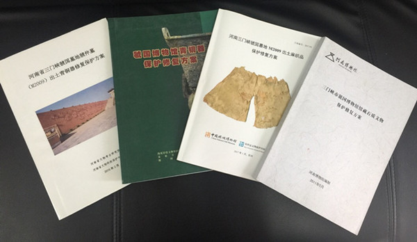 为持续推进馆藏文物的保护工作,2019年下半年虢国博物馆就开始精心筹划文物保护修复方案的编制工作,一方面组织人员对急需修复的馆藏文物进行摸底,另一方面积极联系具备相关资质的方案编制单位。之后,我馆委托金艺桥(北京)文化科技有限责任公司编制馆藏金属类文物保护修复方案,委托河南省文物考古研究院编制馆藏竹木器保护修复方案。经过双方人员前期沟通、现场调查、检测分析、编写方案等过程,最终完成了两项方案的编制工作。《三门峡市虢国博物馆馆藏金属类文物保护修复方案》将对虢国博物馆馆藏116件套(442件)青铜器及铜铁复合文物进行修复保护;《三门峡虢国墓地虢仲墓(M2009)出土竹木器保护修复方案》将对63件套竹木器文物进行保护修复。