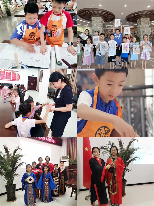本次活动历时六天,授课内容分为特色历史课和讲解技巧培训两大部分,我馆社教老师精心为同学们设计了《沃盥之礼》《考古盲盒——文物探秘》《追寻组玉佩背后的周礼》《体验非遗——卢氏木版年画》,以及《中华姓氏说》等特色课程。课程由浅入深为同学们讲述周代礼仪、虢国文化、三门峡地域文化,再结合趣味手工课程,激发同学们的兴趣,让他们对中国传统文化有更深入的了解。其余时间为孩子们安排了讲解技巧培训,为每一位同学量身打造一篇优美生动的讲解词,从仪容仪表到站姿手势,在社教老师耐心细致的指导下,同学们都成为具有自我风格的优秀虢宝讲解员。
