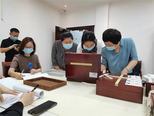 虢国博物馆文物撤展小组在南山博物馆点交撤展文物