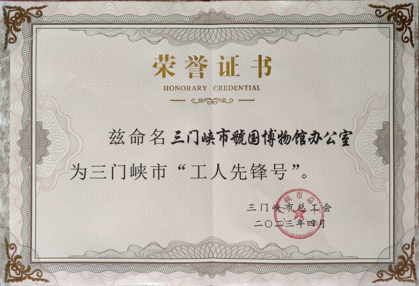 近日,三门峡市总工会授予市虢国博物馆办公室“工人先锋号”荣誉称号!