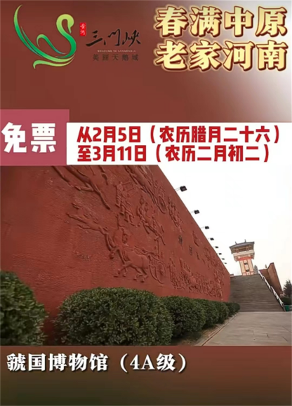 “春满中原 老家河南”!三门峡市虢国博物馆自2024年2月5日(农历腊月二十六)至2024年3月11日(农历二月初二)对游客免收景区门票。