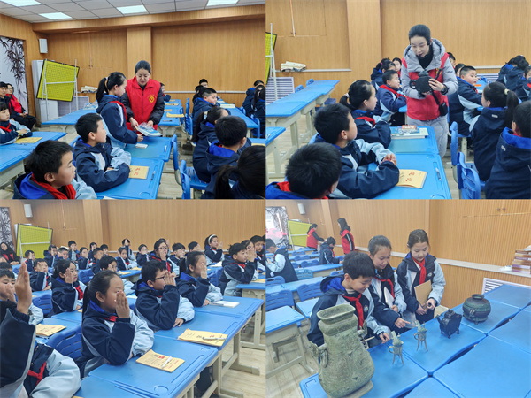 虢国博物馆社教部负责人表示:“作为河南省中小学生研学旅行实践基地,我们始终注重将爱国主义教育与志愿服务相结合。在学雷锋日组织志愿者进校园,既是对‘奉献、友爱、互助、进步’志愿精神的践行,也是让沉睡的文物资源转化为鲜活教育素材的创新尝试。”校方负责人则反馈,这种沉浸式文化体验有效激发了学生的民族自豪感,许多孩子课后主动要求参观博物馆。