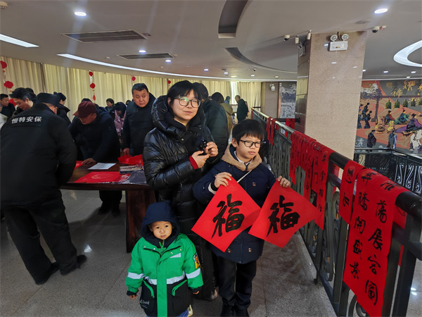 活动当天,十余名书法专家亲临现场,以笔墨为媒向大家送上祝福。书法家们铺开红纸,挥毫泼墨,笔走龙蛇间,“福”字饱满圆润,对联工整典雅。一幅幅寓意吉祥的春联在书法家们的笔下诞生:“门迎骏马千祥至,户纳新春百福来”、“门迎百福福星照,户纳千祥祥云开”……既有传统韵味,又饱含时代气息。同时博物馆工作人员也为前来参观的游客送上饱含墨香与暖意的春联,让博物馆里的年味儿愈发醇厚。